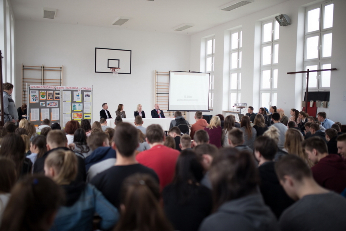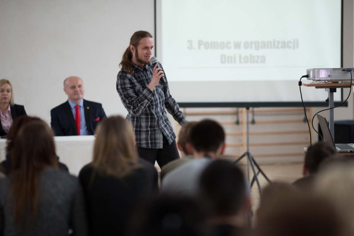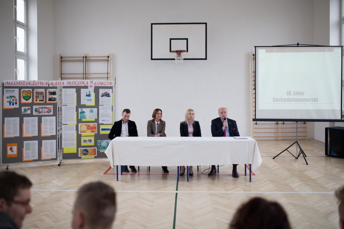 Gospodarzem prelekcji była Młodzieżowa Rada Miejska w Łobzie. Spośród trzynastu jej członków stawiło się ośmiu tzn.; Filip Rozpędowski – przewodniczący, Zuzanna Romejko, Daniela Batorewicz, Dawid Walczak, Michał Stefanowski, Sandra Kondracka, Ewa Adamczewska i najmłodszy członek Rady – Wiktor Krzęćko. Wśród przybyłych gości należy wymienić burmistrza Łobza – Pana Piotra Ćwikłę, sekretarz gminy – Panią Magdalenę Kowalec i opiekuna młodzieżowej rady z ramienia Gminy – Panią Anetę Dajnowską.