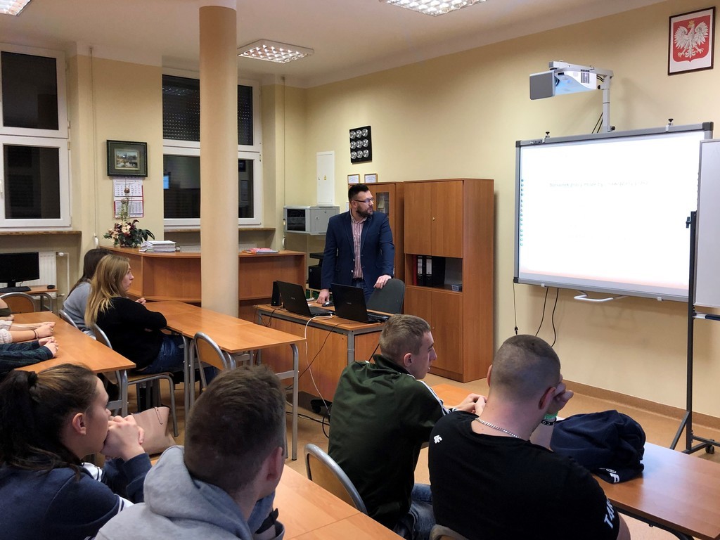 W ramach współpracy między Państwową Inspekcją Pracy a Zespołem Szkół im. T. Kościuszki w Łobzie, w projekcie „Kultura bezpieczeństwa”, 3 grudnia 2018 r. odbyły się spotkania uczniów naszej szkoły z inspektorem pracy, panem Marcinem Prokopem.