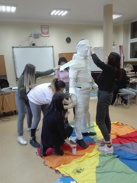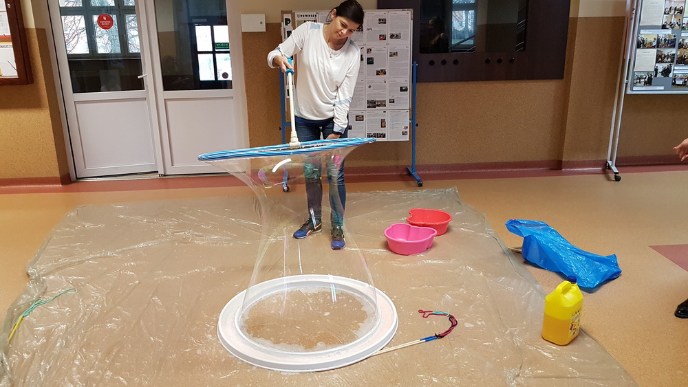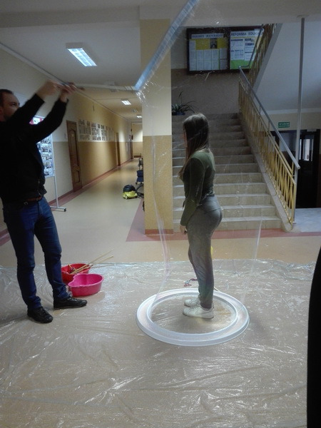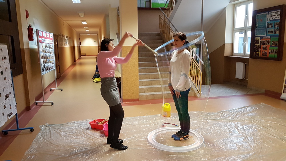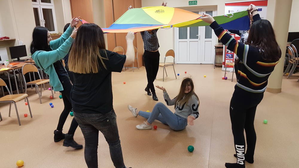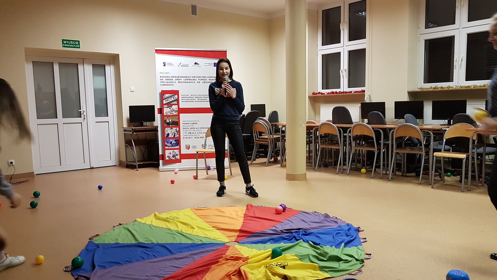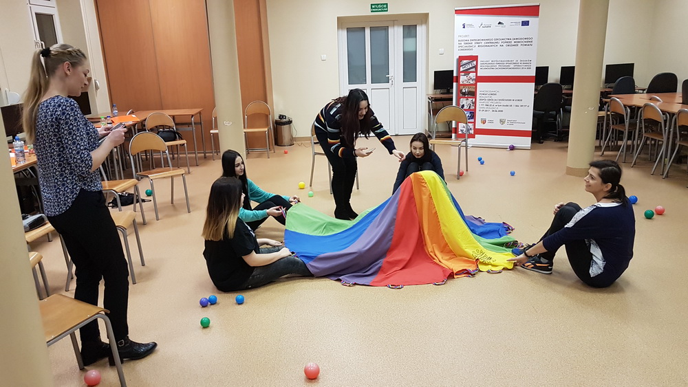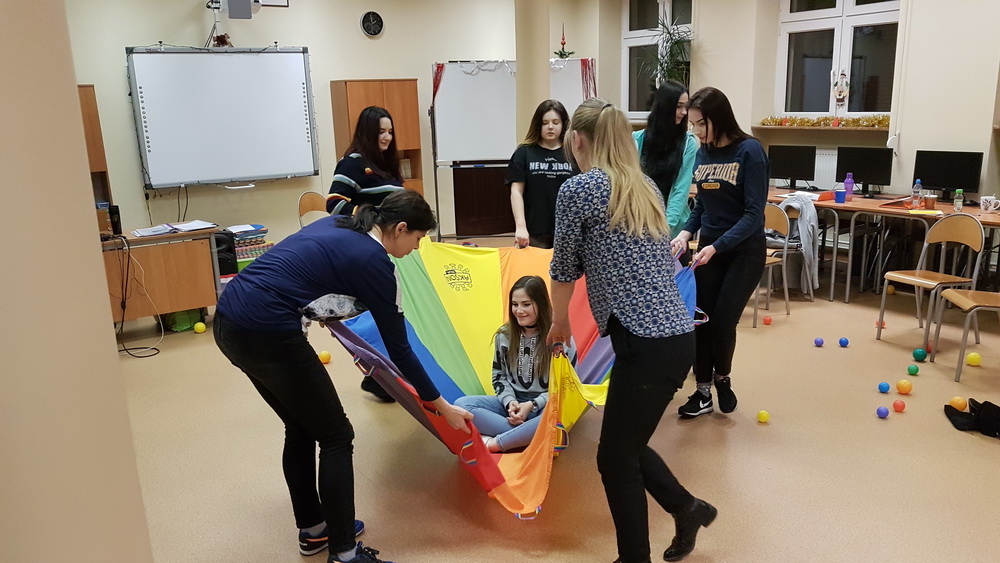 Prowadząca szkolenie, Elżbieta Komorowska, przybliżyła pracę animatora, omawiając szczegółowo jej specyfikę. Po kilku godzinach teorii wszyscy uczestnicy wypróbowali w praktyce różne rodzaje animacji, które można przeprowadzić z dziećmi, młodzieżą lub z dorosłymi. Są to różne zabawy ruchowe, logiczne, a także takie, przy których można się wyciszyć (np. kolorowanki, malowanie twarzy). Największą atrakcją, w którą zaangażowali się wszyscy uczniowie, było tworzenie dużych baniek, a także zamykanie osób w bańce mydlanej.