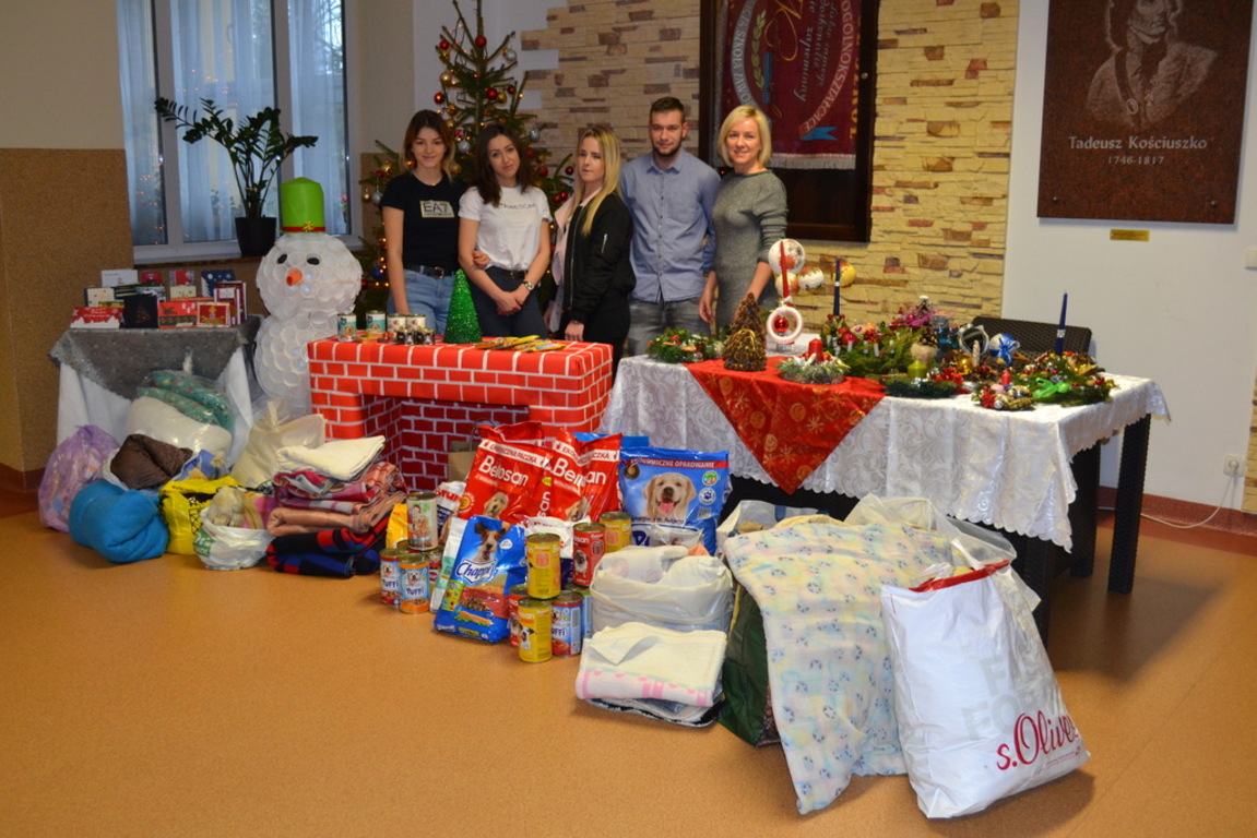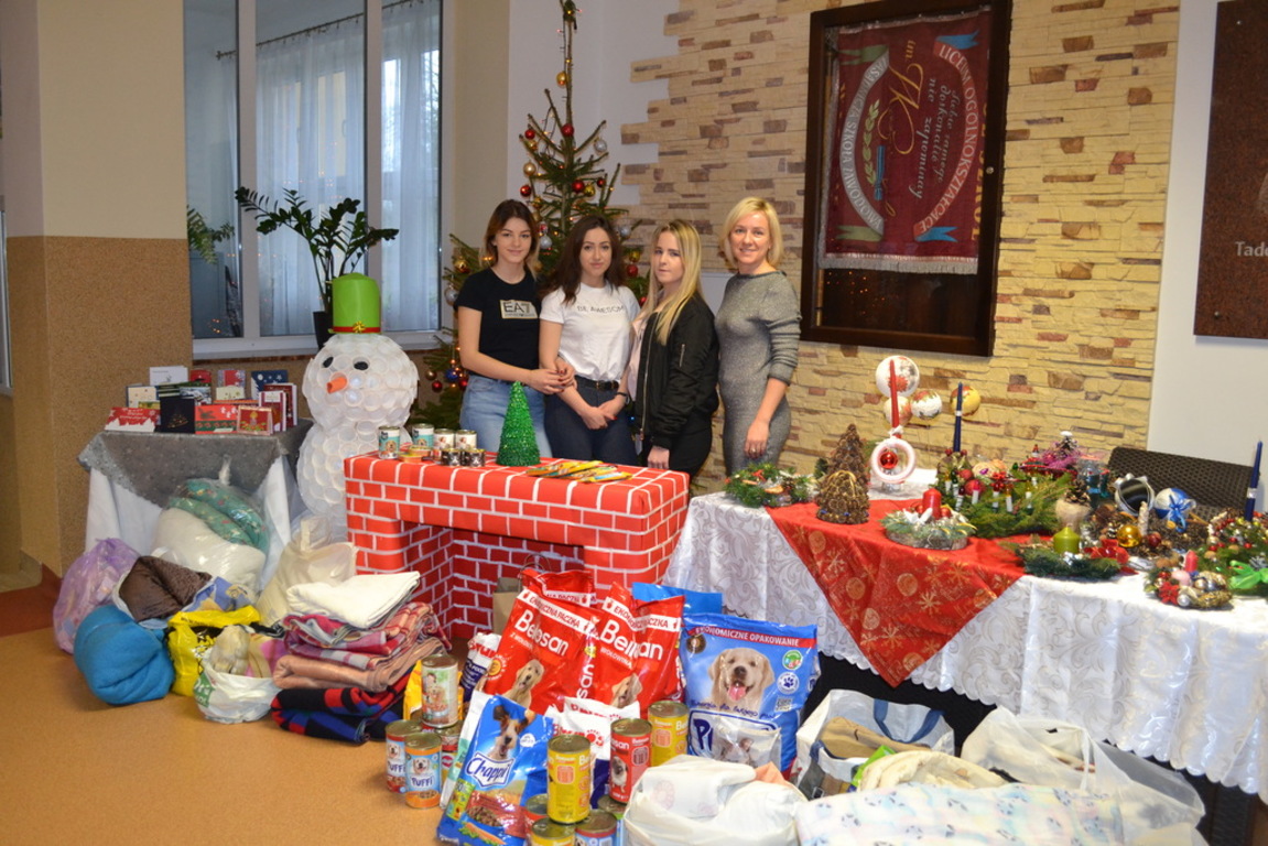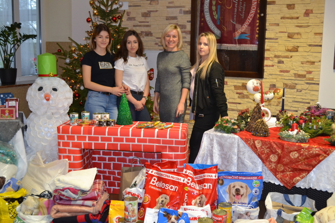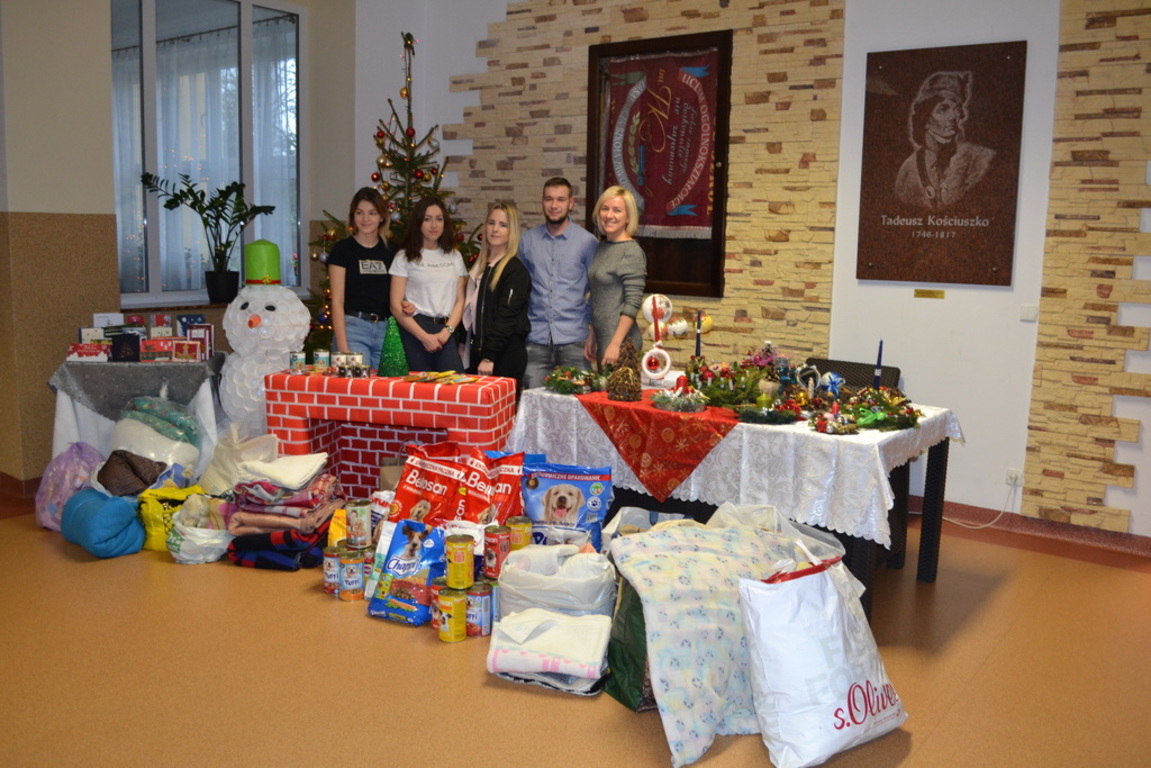 Już trzeci raz uczniowie szkoły zawodowej z wychowawczynią Joanną Nikołajczyk zorganizowali zbiórkę darów dla bezdomnych zwierząt. Akcja zawsze porusza serca. Włączają się w nią nie tylko uczniowie, ale także nauczyciele i pracownicy niepedagogiczni. Zebraliśmy w tym roku 61 kg karmy suchej dla psów, 19 kg karmy w puszkach plus przysmaki, 1,5 kg suchej karmy dla kotów i 1 kg mokrej. Oprócz tego koce, narzuty, pościel, kołdry i inne pledy, którymi można wyścielić zwierzęcy kojec na zimę.