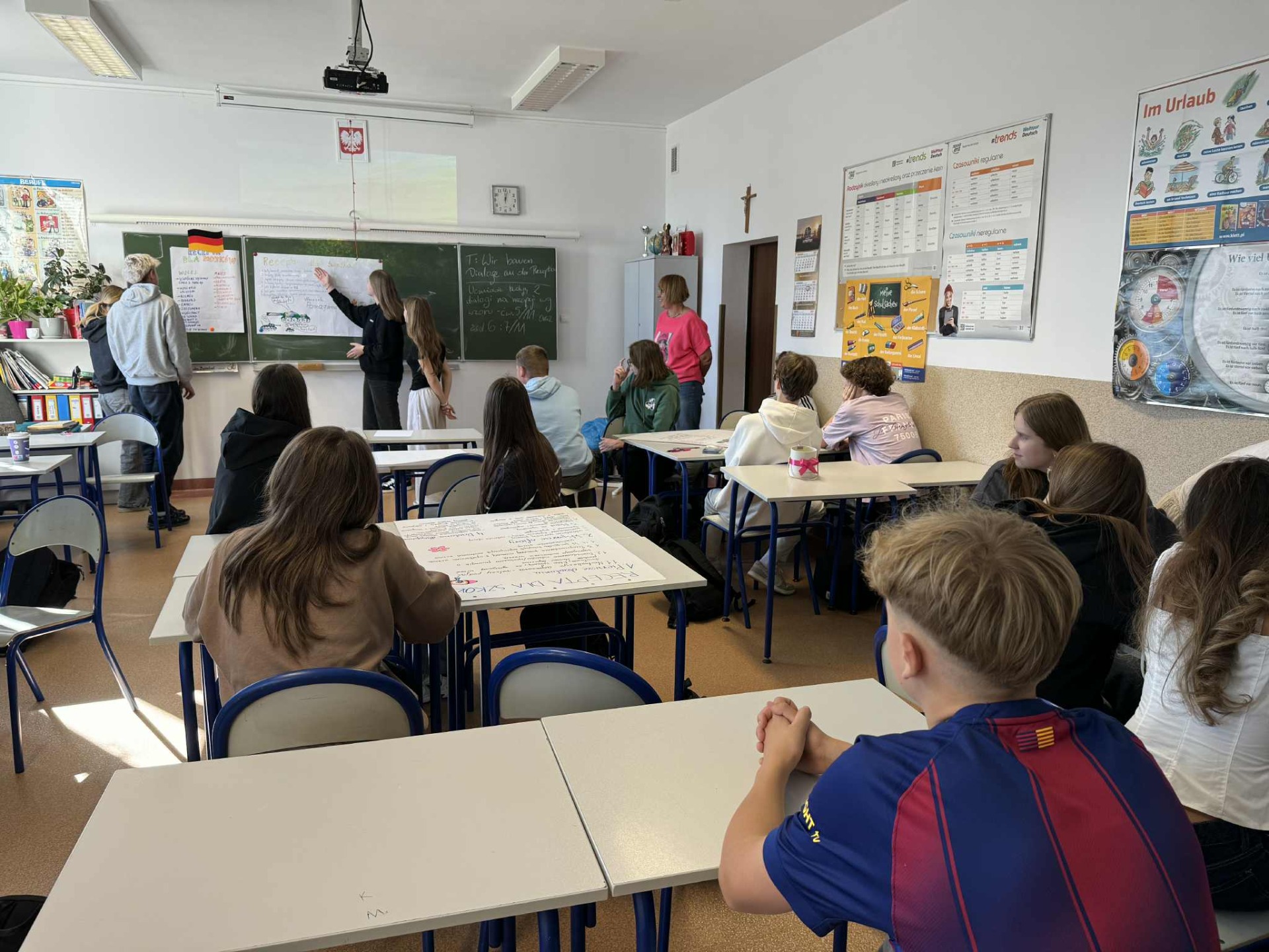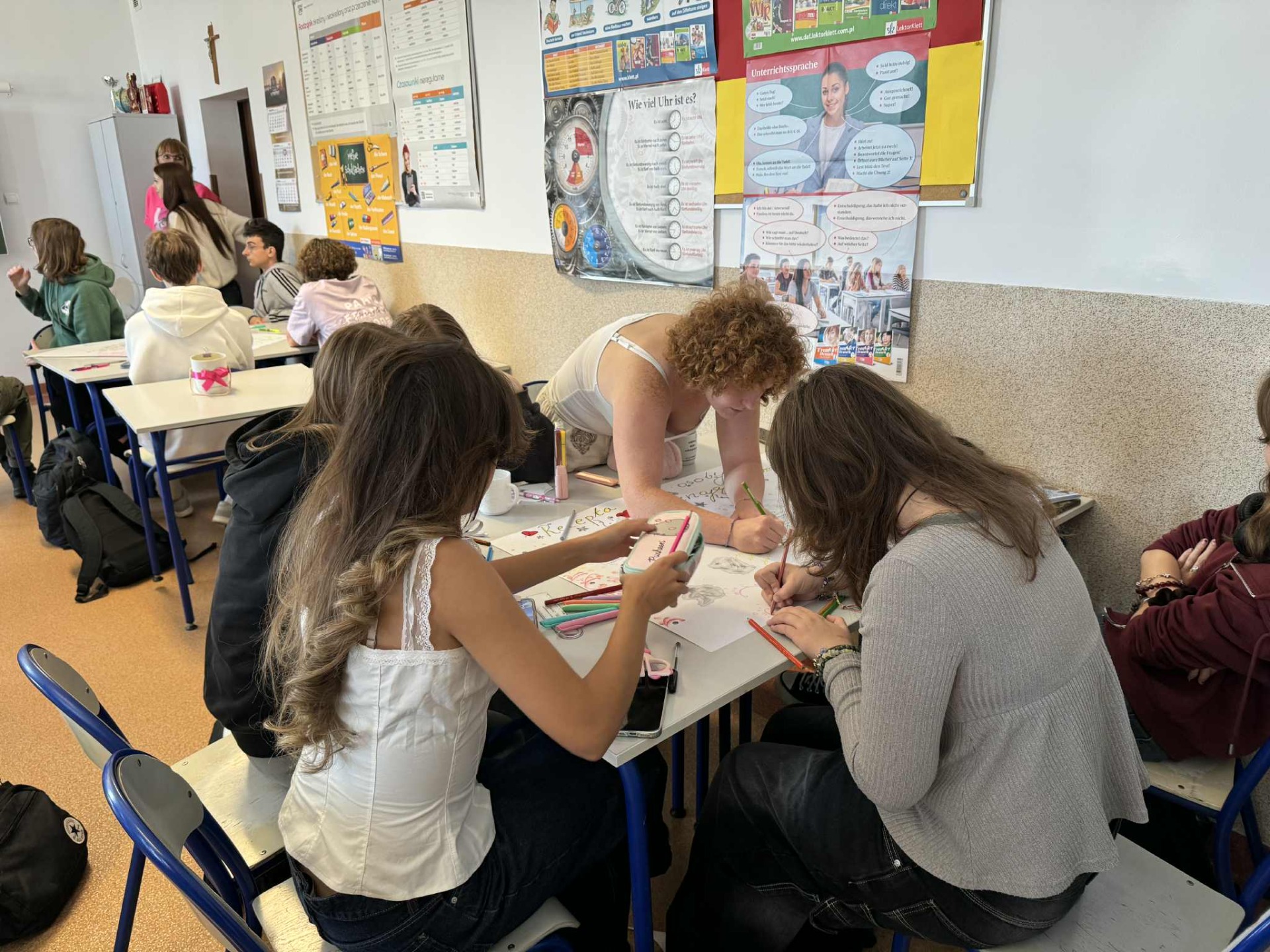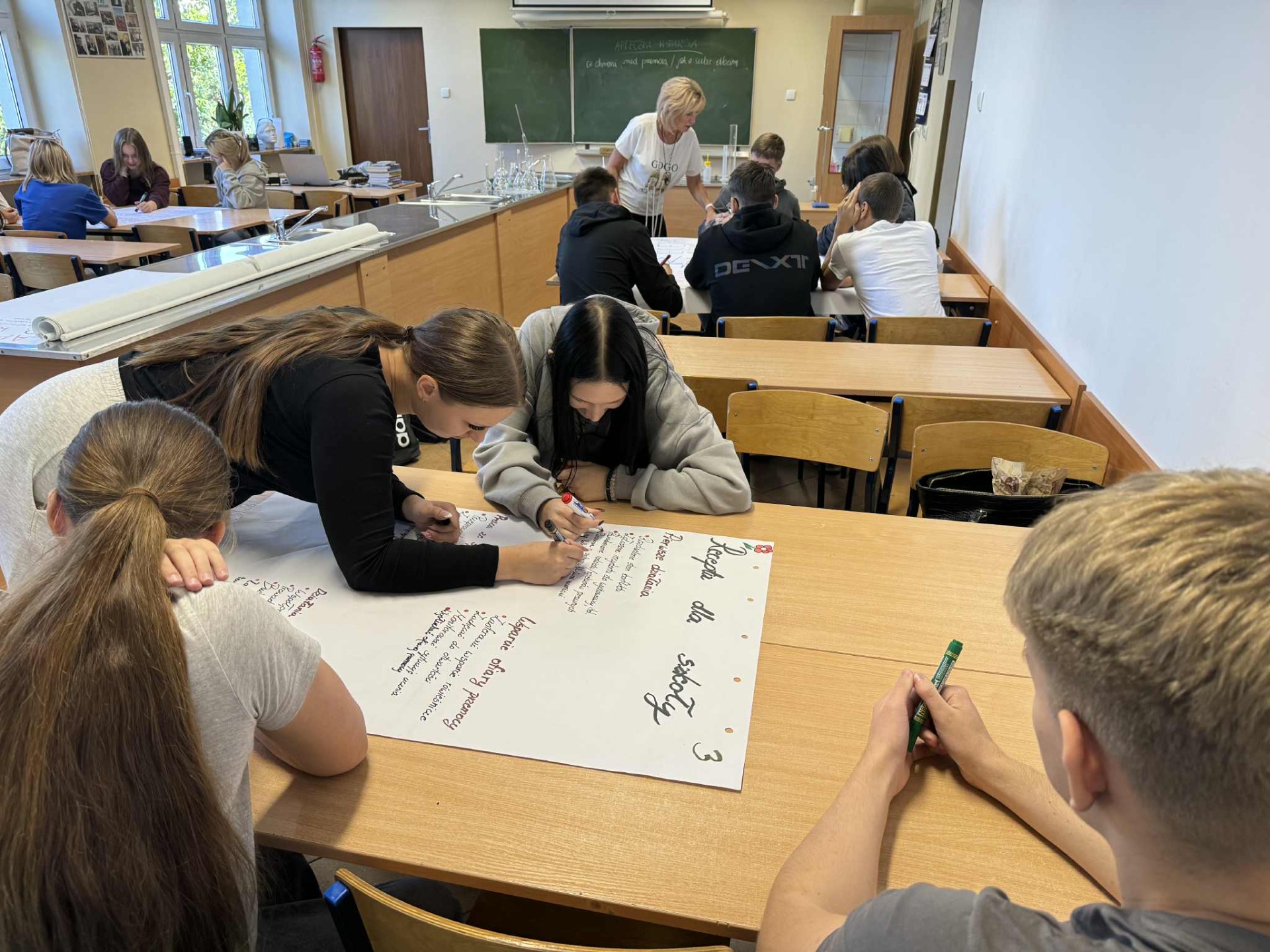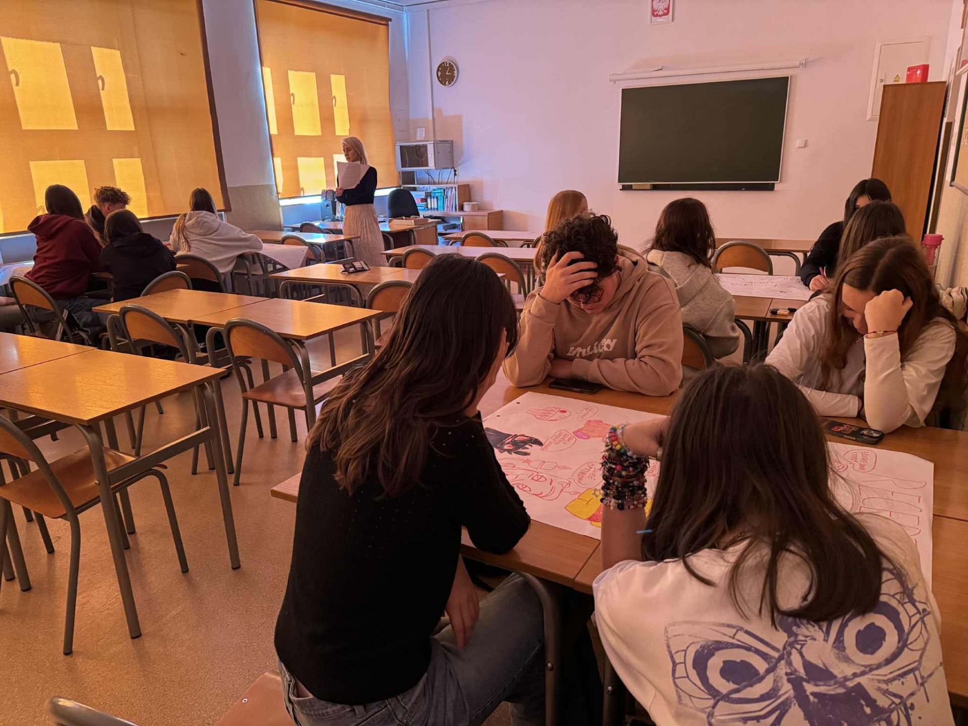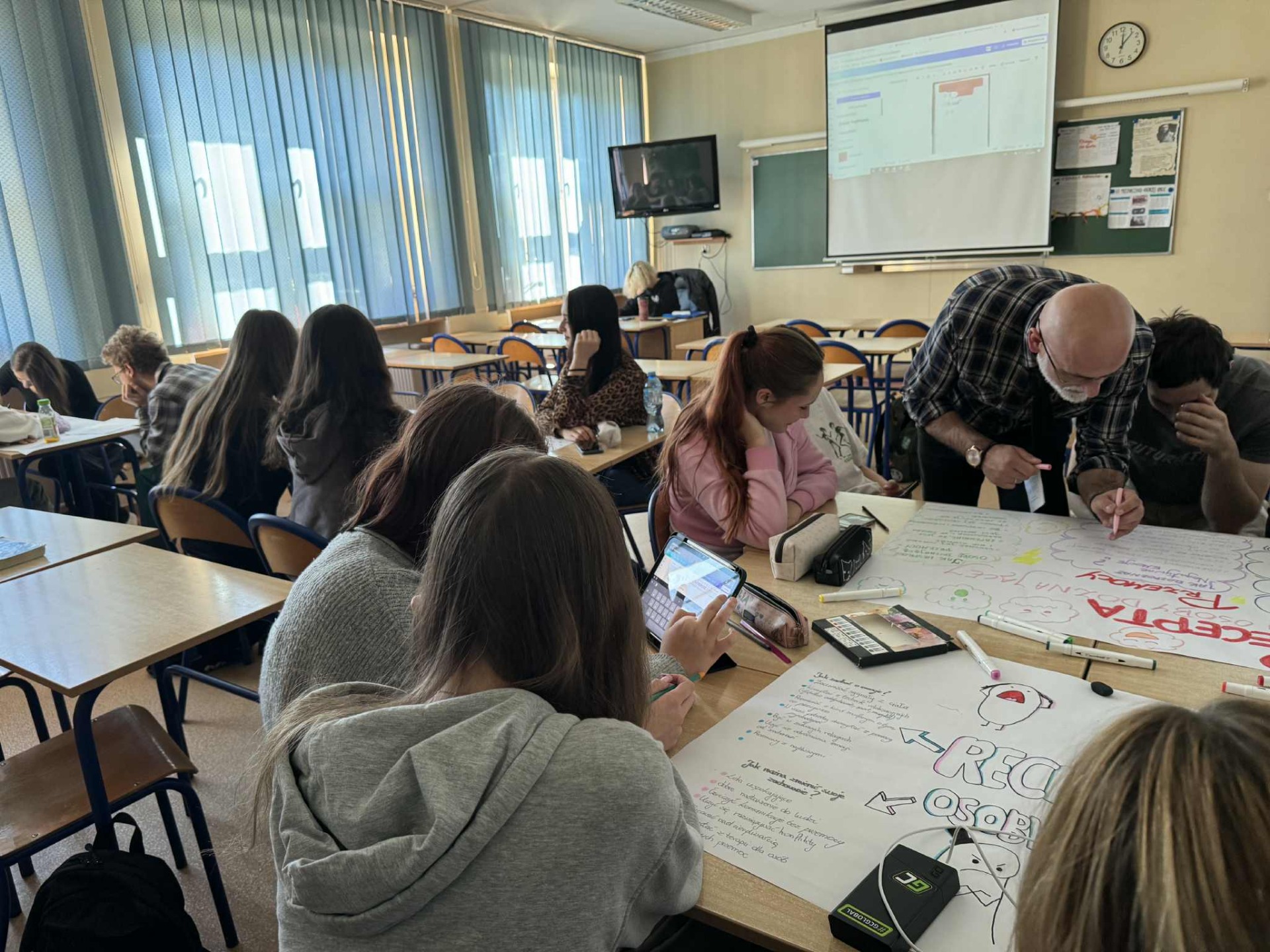W naszej szkole również włączyliśmy się w działania tego tygodnia. Odbyły się lekcje wychowawcze poświęcone przemocy i cyberprzemocy, podczas których uczniowie dyskutowali, jak budować atmosferę bezpieczeństwa w klasie i reagować w trudnych sytuacjach. W każdej klasie zorganizowaliśmy warsztaty „Szkolna Apteczka Wsparcia”, na których uczniowie tworzyli recepty pierwszej pomocy w sytuacji przemocy rówieśniczej i wspólnie opracowali klasową apteczkę wsparcia. Następnie pomysły młodzieży zostały przeniesione do programu Canva w formie plakatów i broszur w ramach szkolnej kampanii „Razem przeciw przemocy”.