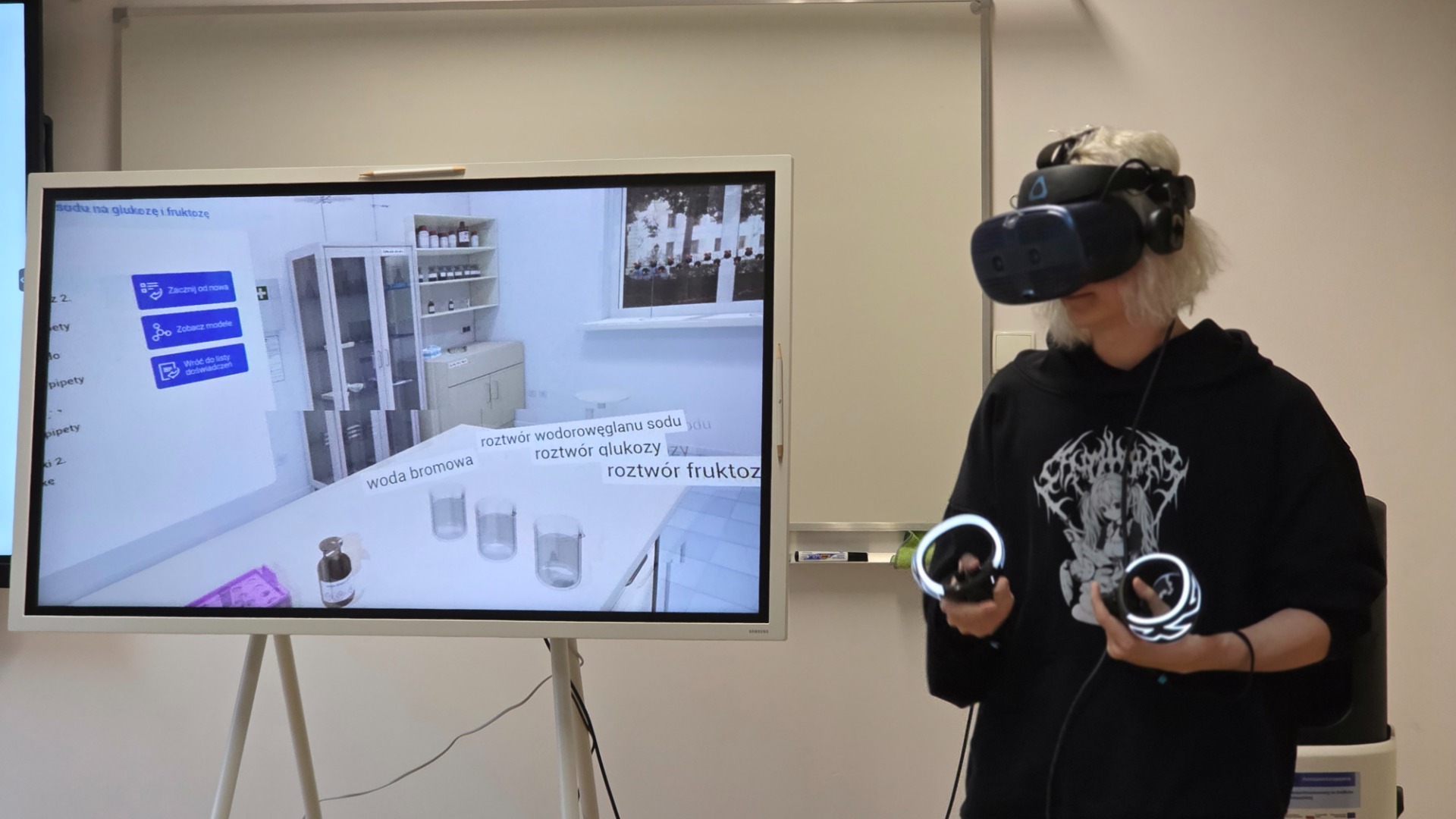 W obecności zaproszonych gości: Starosty Łobeskiego Edwarda Arysa, Wicestarosty Pawła Marka, Członków Zarządu Powiatu - Krystyny Boguckiej i Lidii Czyż oraz Inspektora ds. Zamówień Publicznych i Pozyskiwania Funduszy Rafała Żukowskiego, koordynator projektu, Joanna Nikołajczyk, przedstawiła realizację poszczególnych zadań oraz osiągnięte wskaźniki. Następnie pani Anna Rabiejewska wraz z tegorocznym maturzystą Maciejem Mazurem zaprezentowała możliwości Empiriusza – wirtualnej pracowni chemicznej. W krótkiej przerwie goście mieli okazję przekonać się, że poruszanie się w wirtualnym świecie nie jest wcale takie proste.